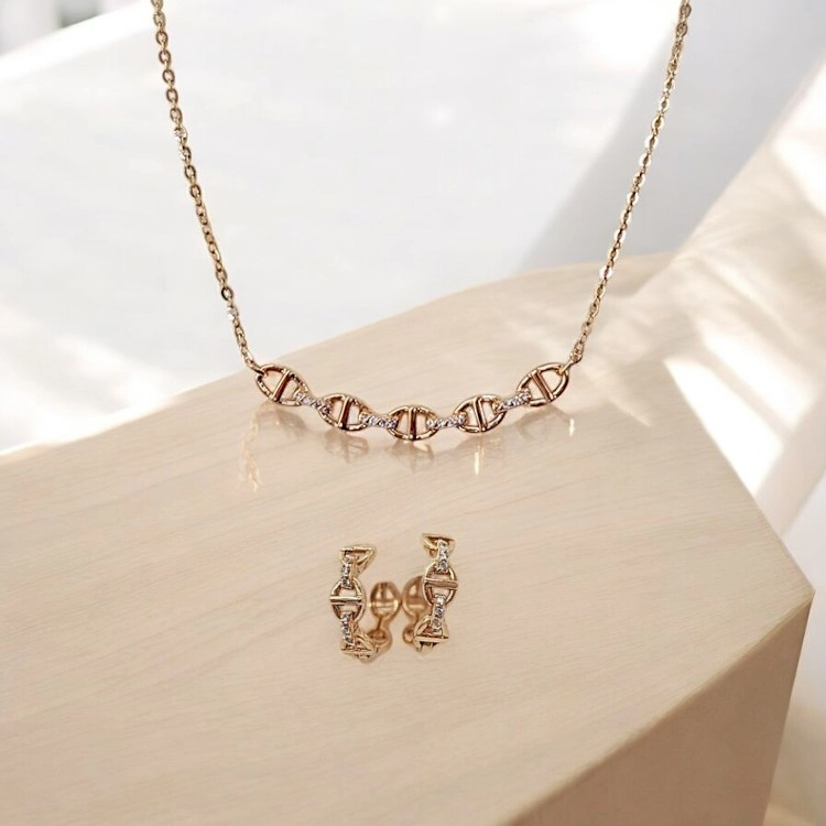 타원 링크 연결 체인 팔찌+목걸이 2종세트[H1058]
