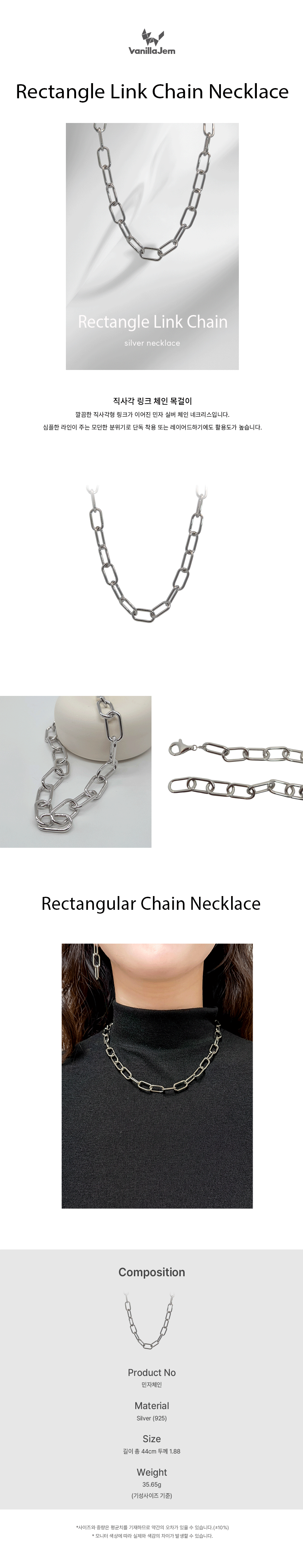 실버 직사각 링크 체인 목걸이