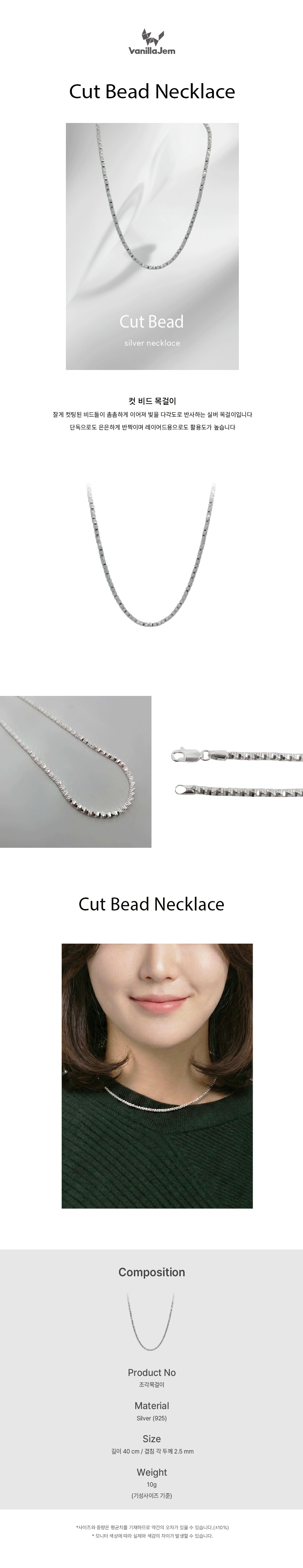 실버 컷 비드 목걸이