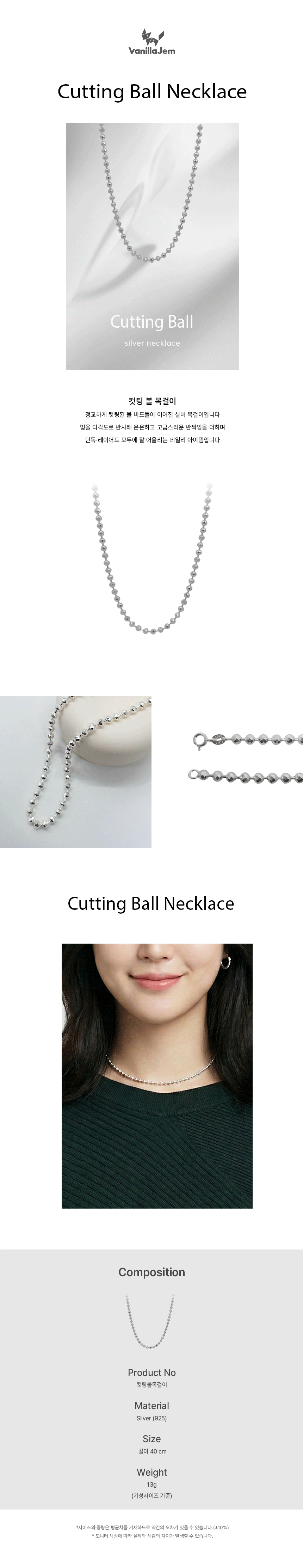 실버 컷팅 볼 목걸이