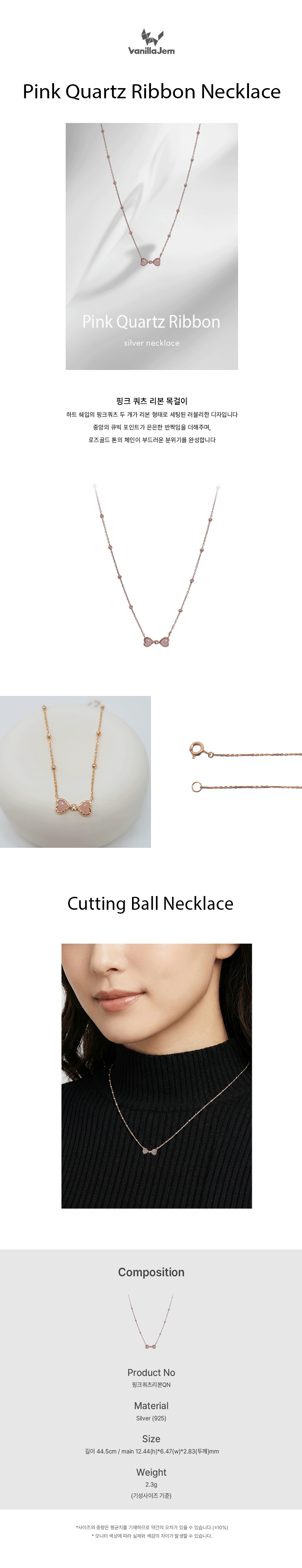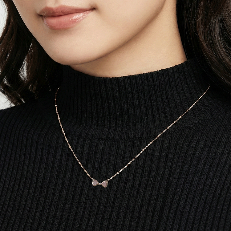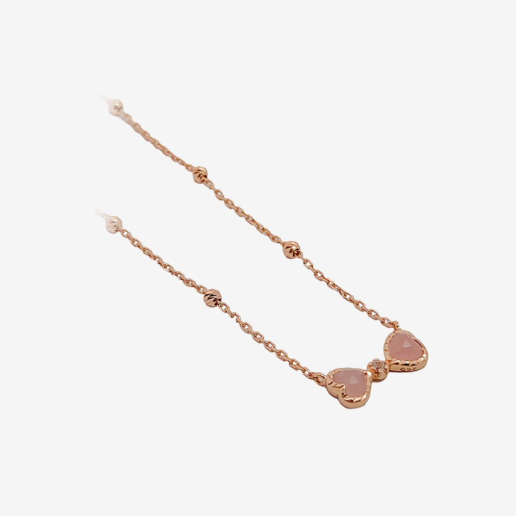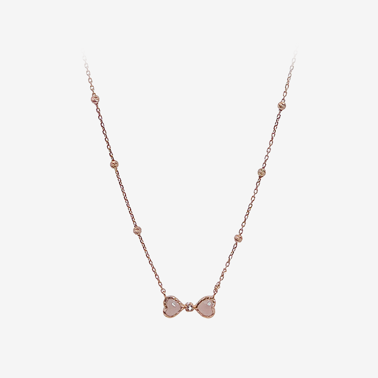 실버 핑크쿼츠 하트 리본 목걸이