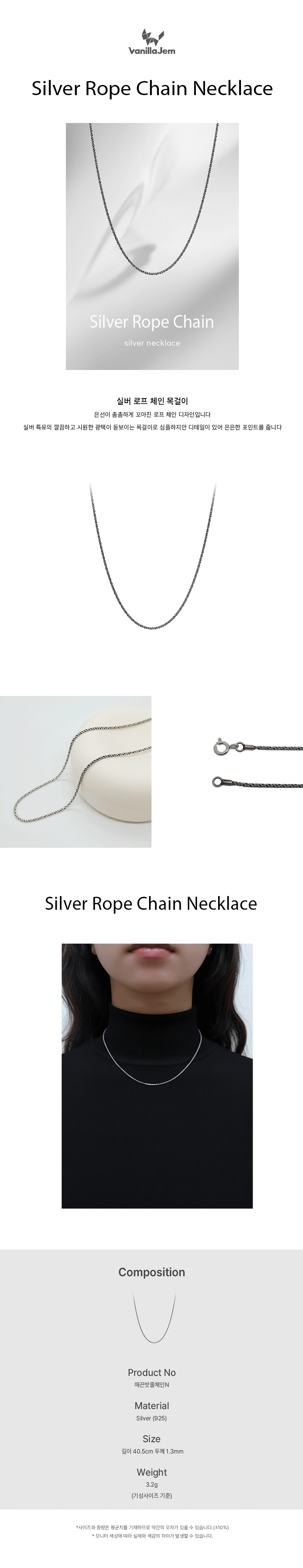 실버 밧줄 체인 목걸이