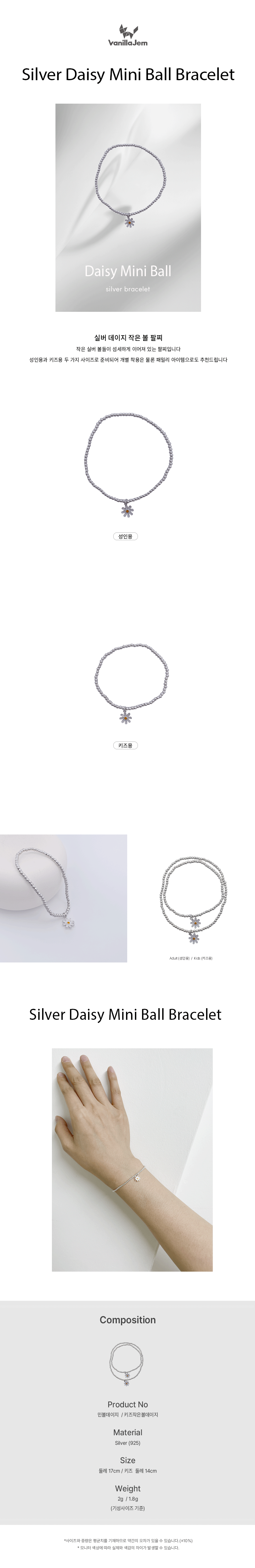 실버 데이지 작은 볼 팔찌