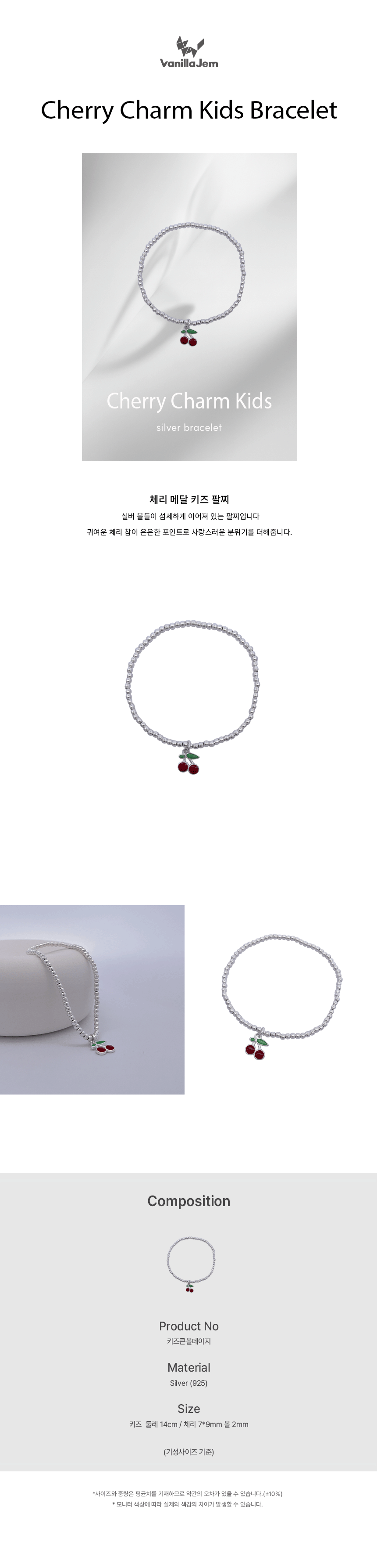 실버 볼 체리 메달 키즈 팔찌