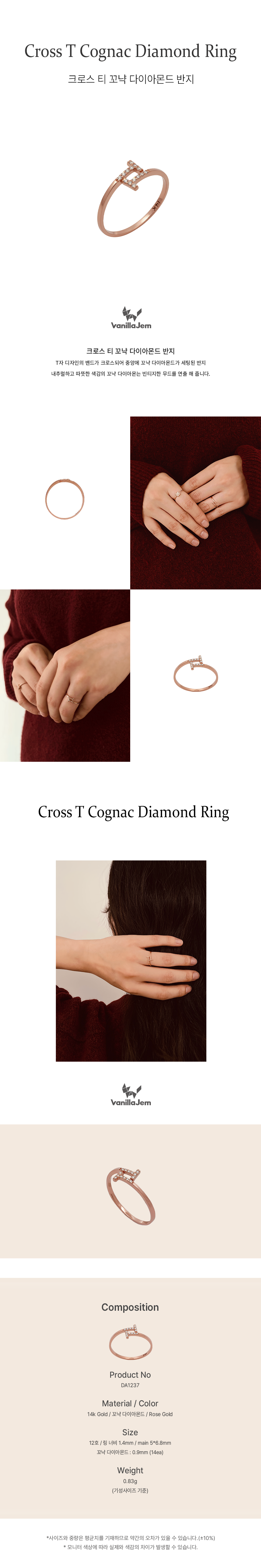 크로스 티 꼬냑 다이아몬드 반지