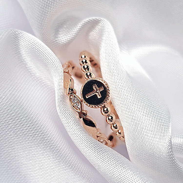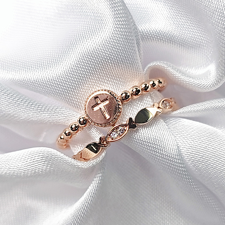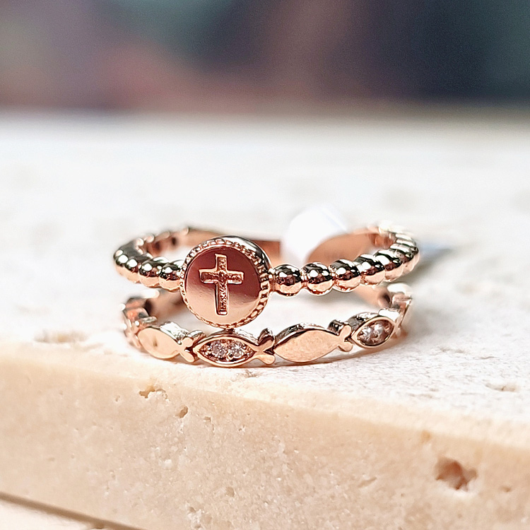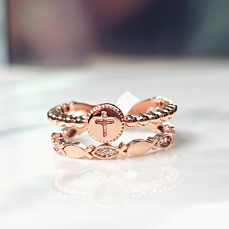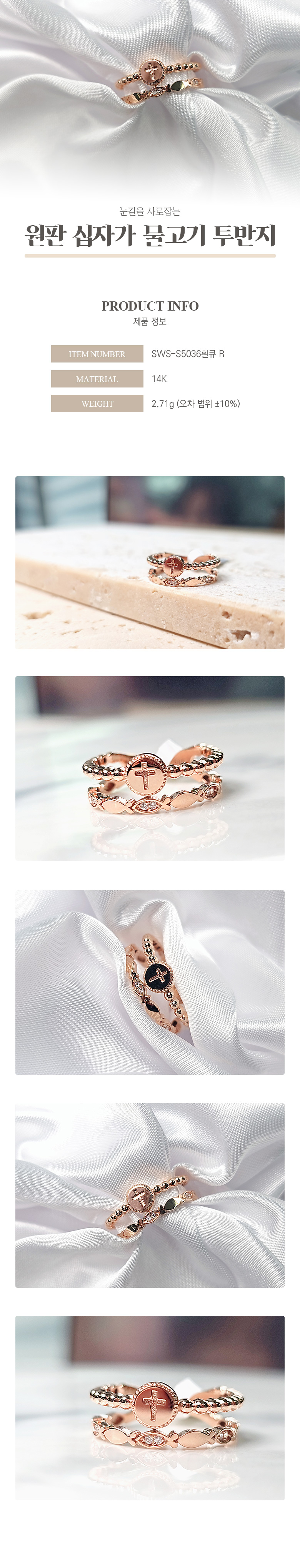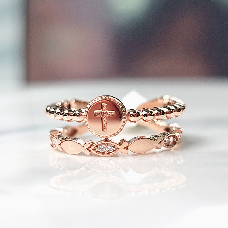 원판십자가물고기투반지[SWS-S5036흰큐 R]