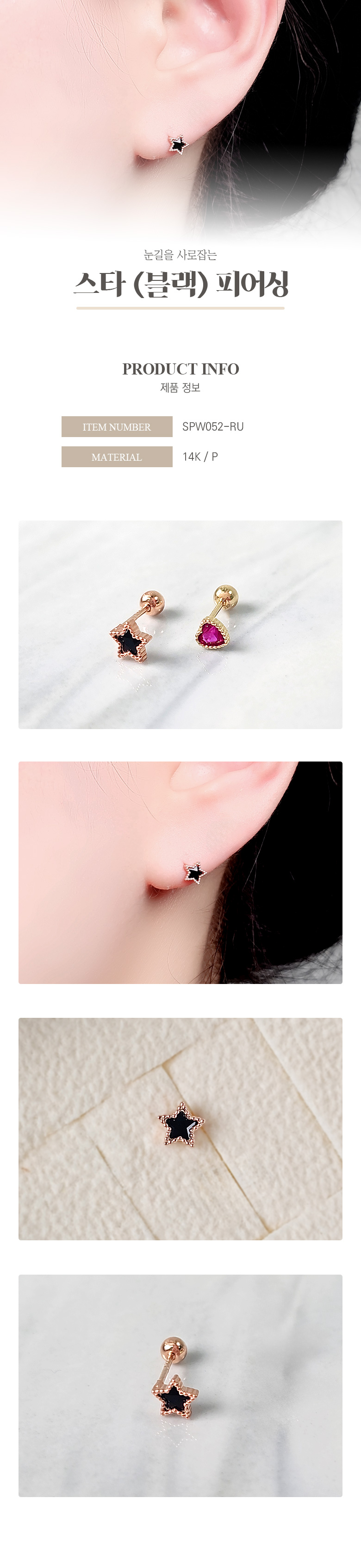 스타(블랙)피어싱[SPW052-RU]