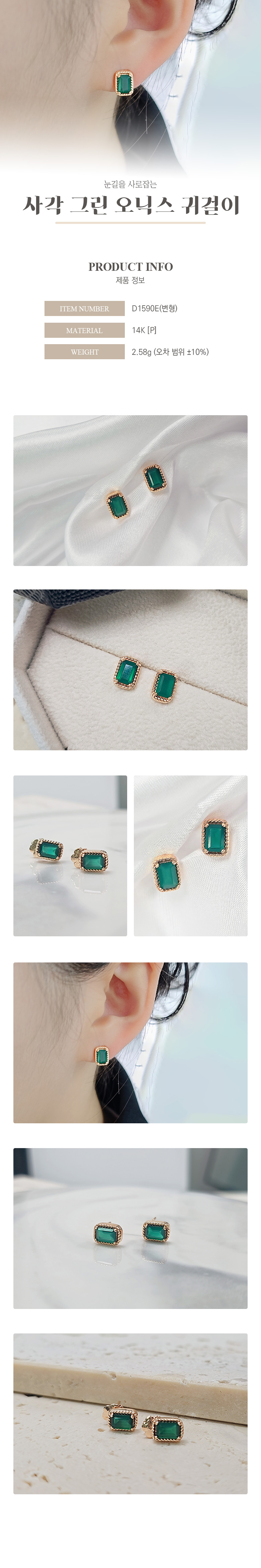사각 그린 오닉스 귀걸이[D1590E(변형)]