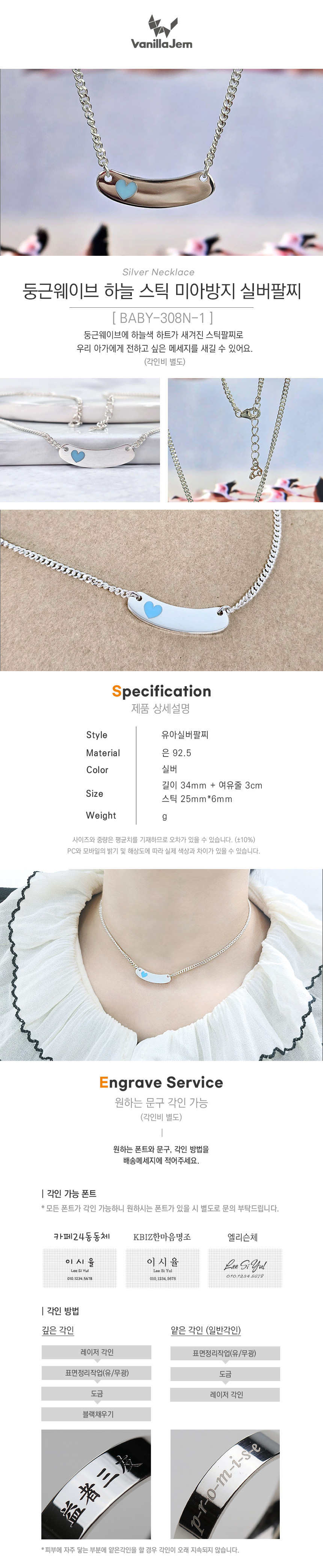 둥근 웨이브스틱 하늘 바닐라잼 미아 방지 실버 목걸이[ BABY-308N-1 ]