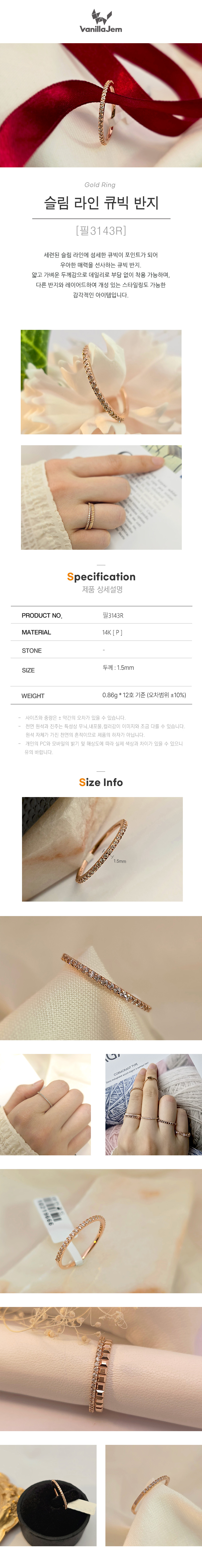 슬림 라인 큐빅 반지 [필3143R]