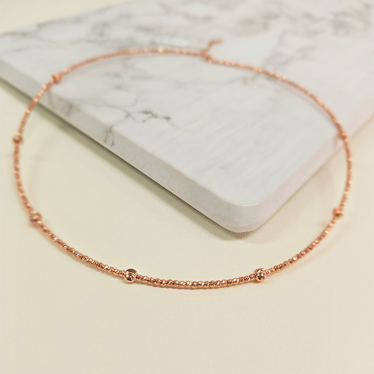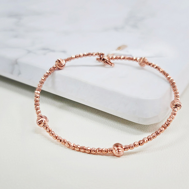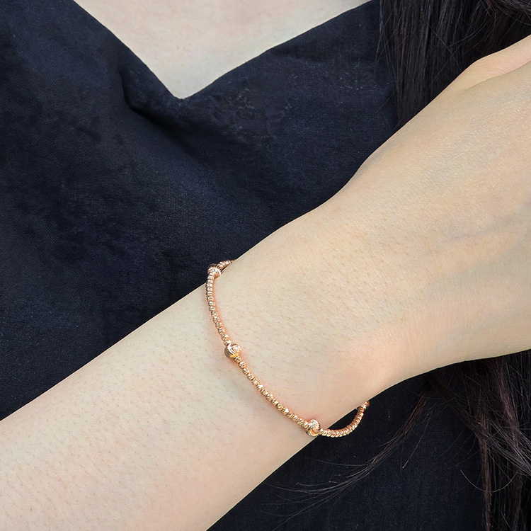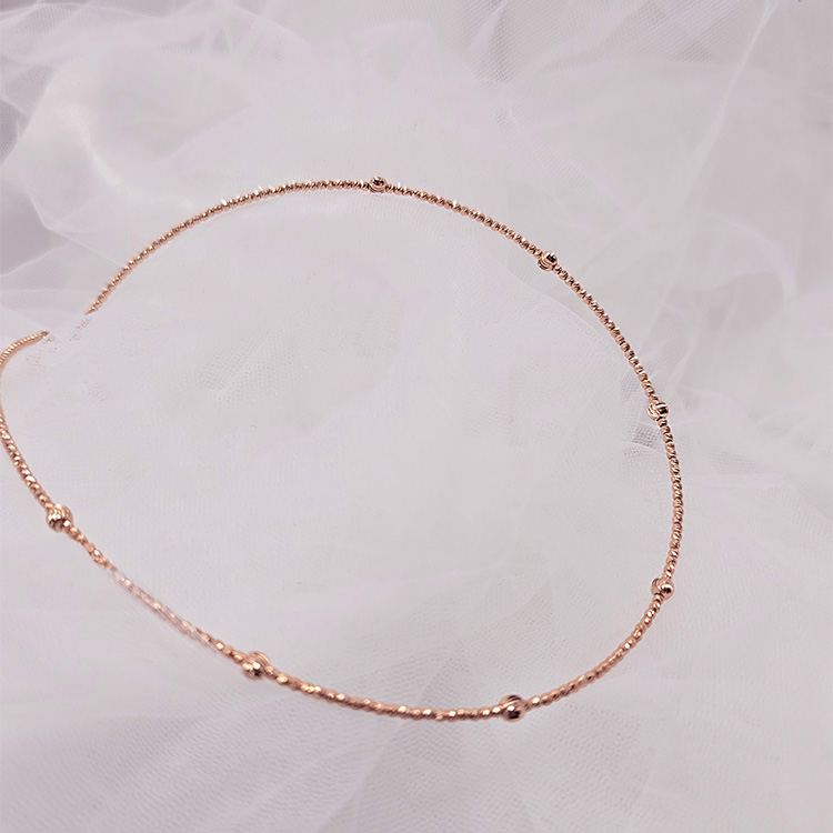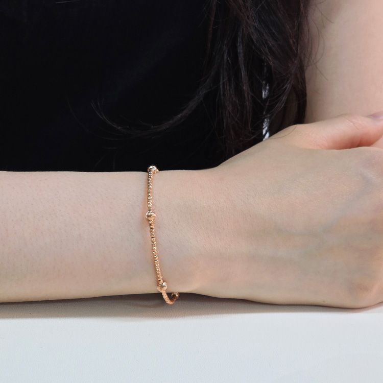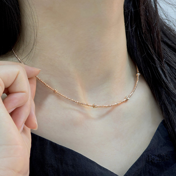 미니볼 체인 사이로 도톰한 골드볼이 리듬감 있게