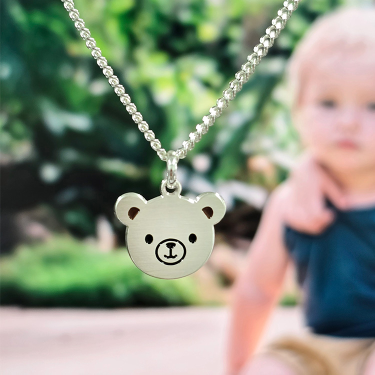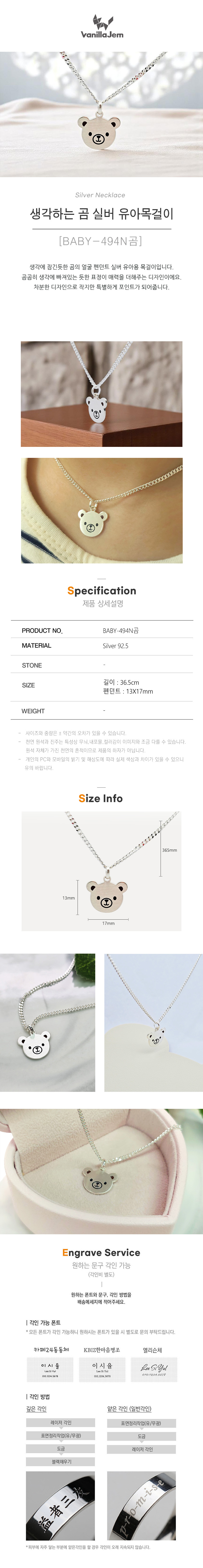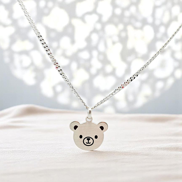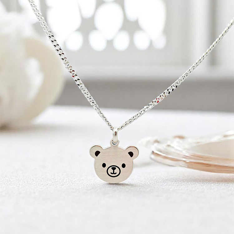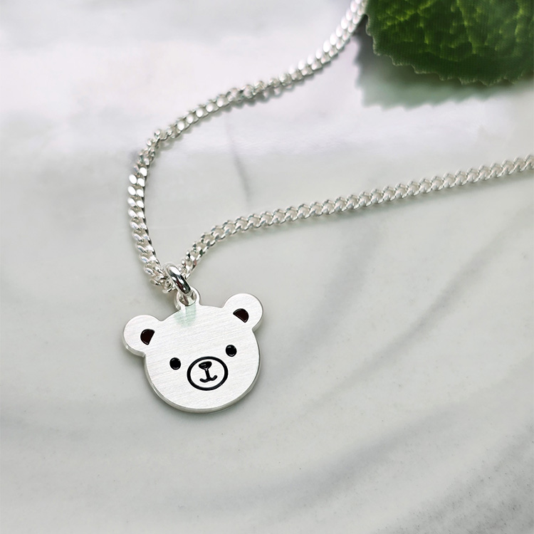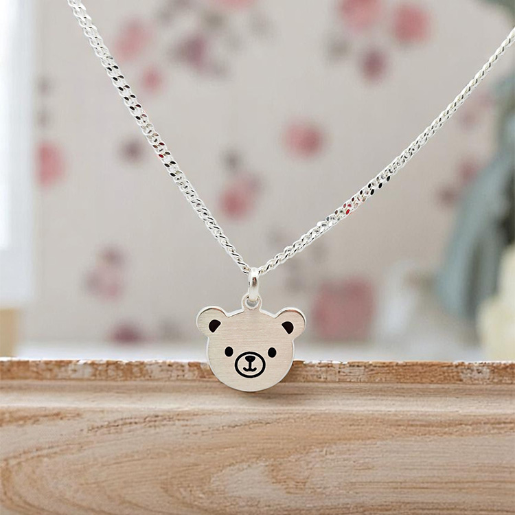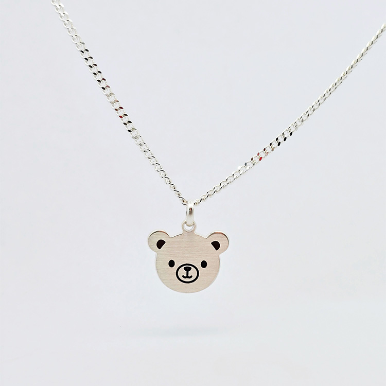 생각에 잠긴듯한 곰의 얼굴 펜던트 실버 유아용 목걸이입니다.