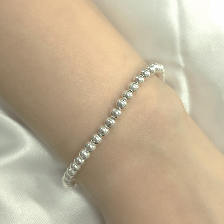 군더더기 없는 깔끔한 실버볼 팔찌입니다.