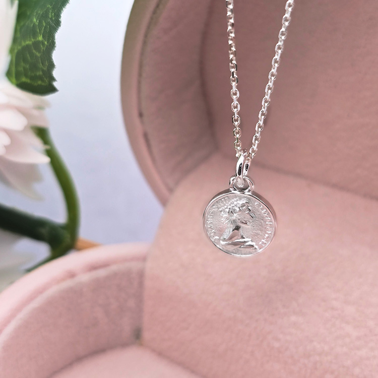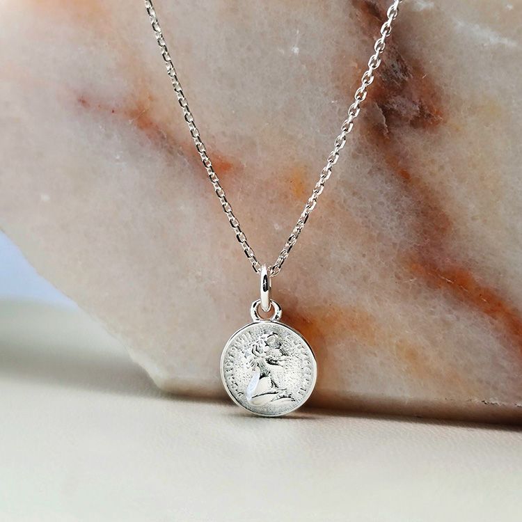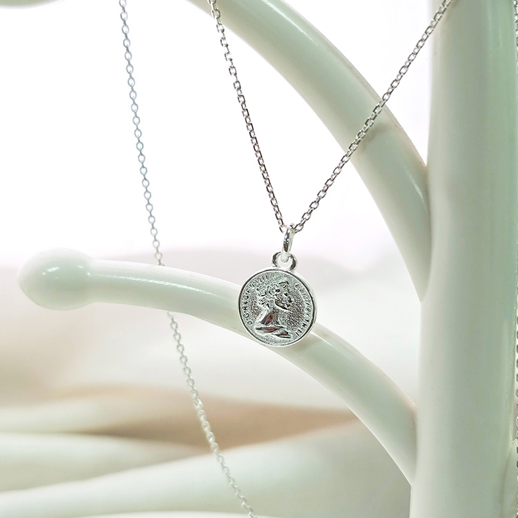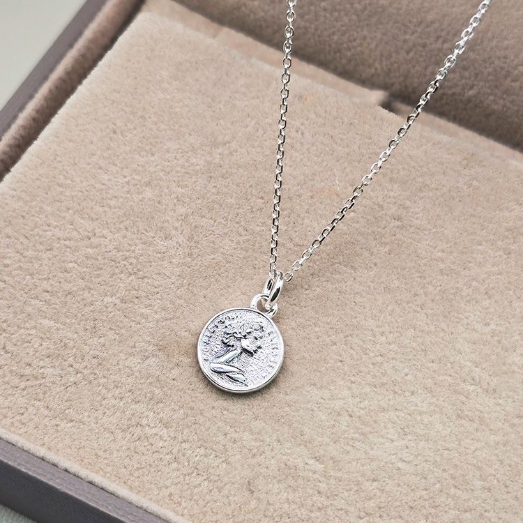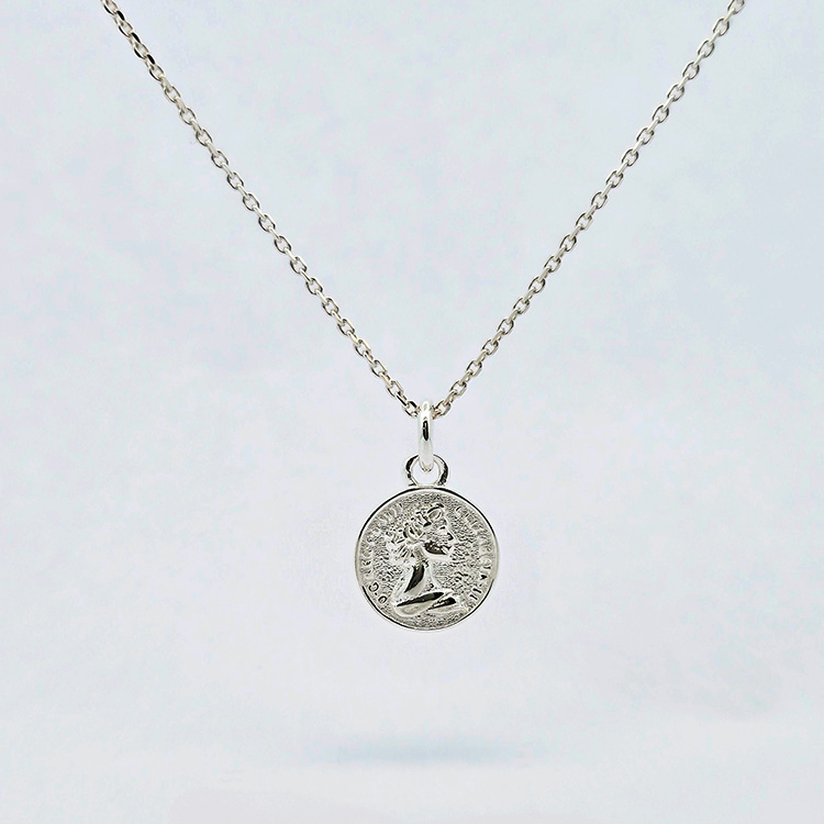 양면 각인으로 두가지 분위기를 연출 할 수 있는 실버 코인 목걸이입니다. 클래식하고 레트로한 각인으로 양면이 다른 각인으로 구성되어있어요.