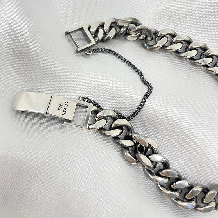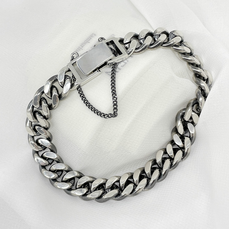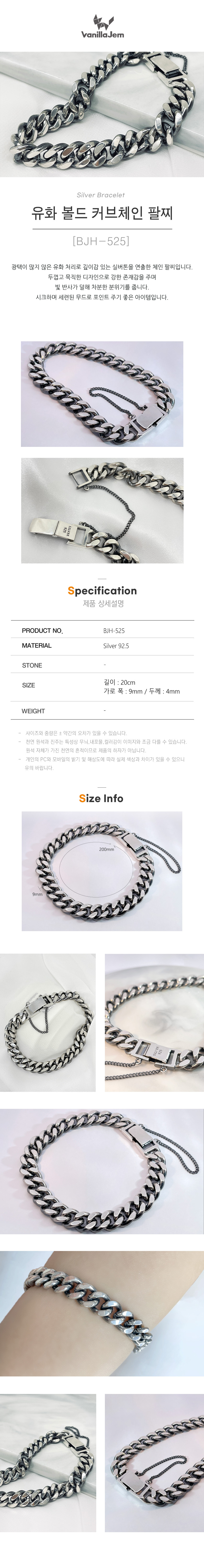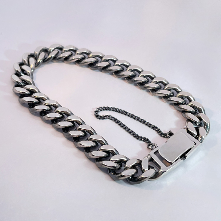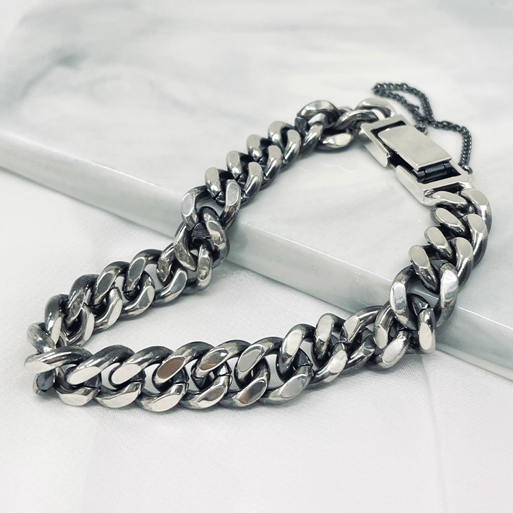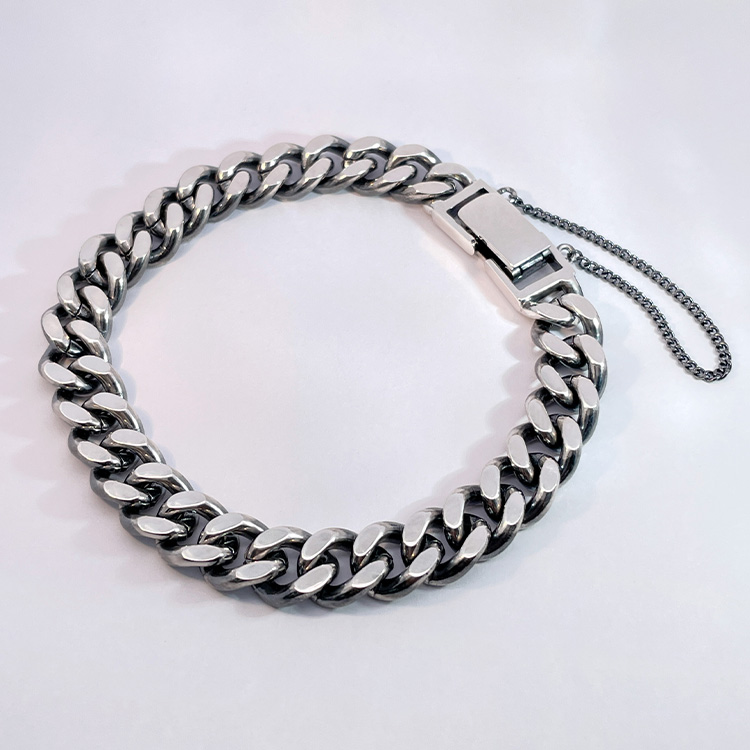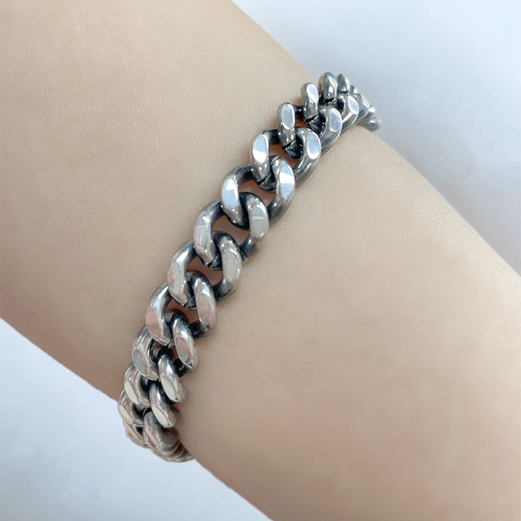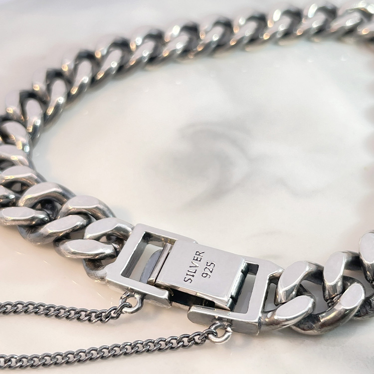 광택이 많지 않은 유화 처리로 깊이감 있는 실버톤을 연출한 체인 팔찌입니다.