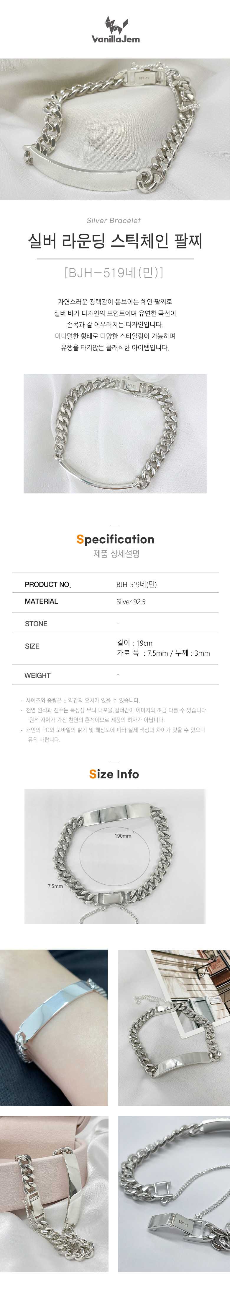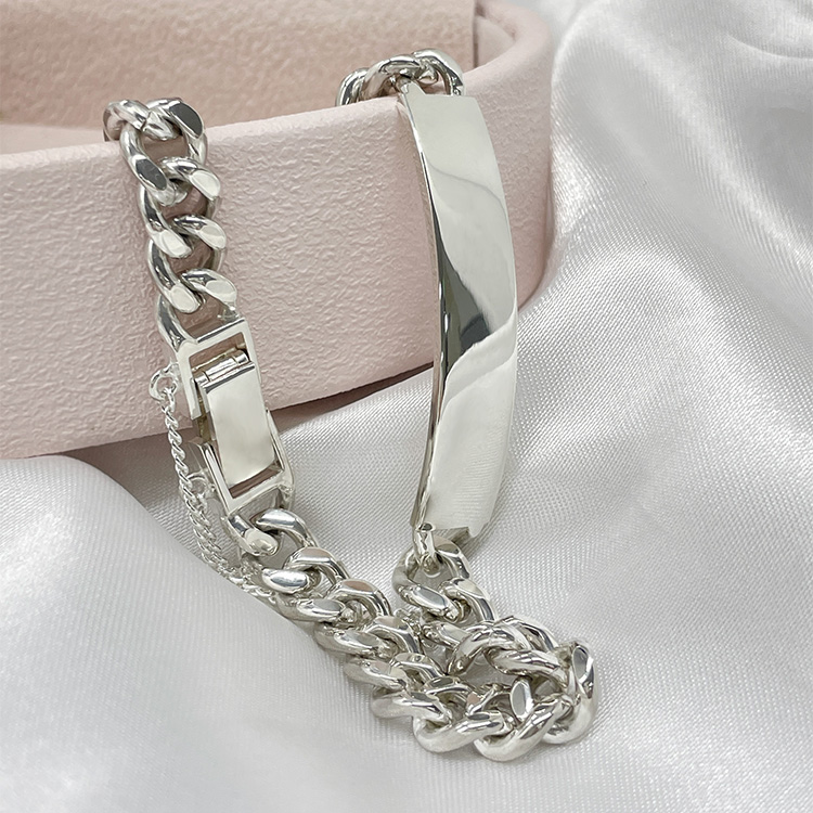 실버 라운딩 스틱체인 팔찌