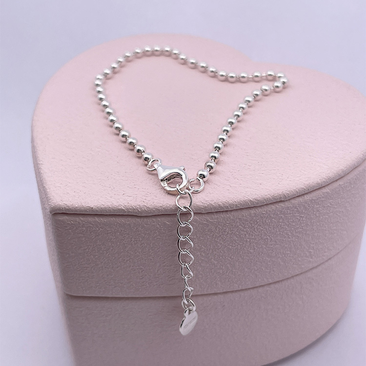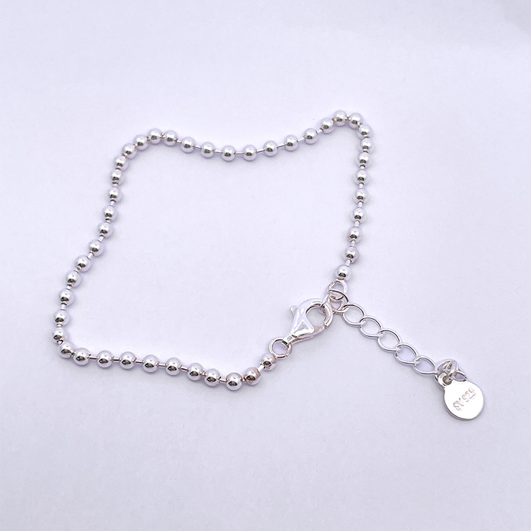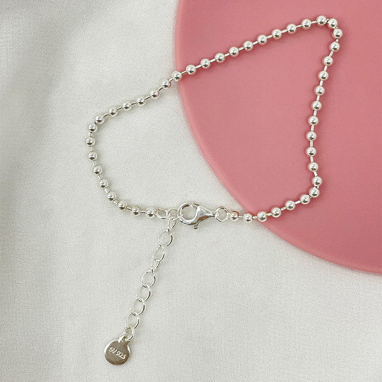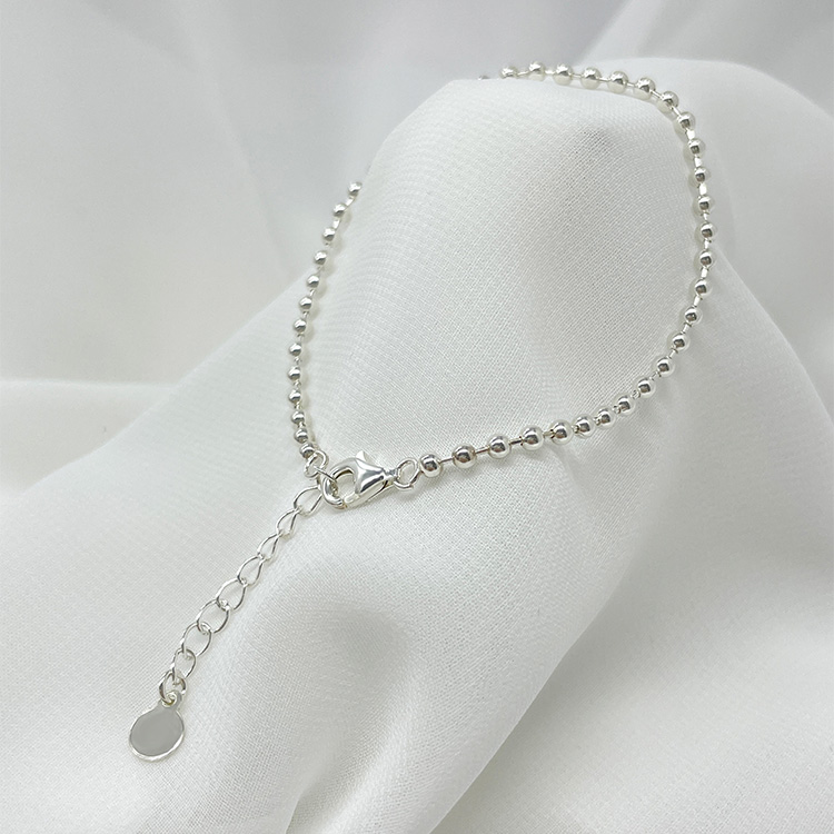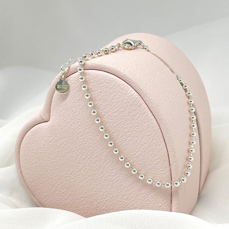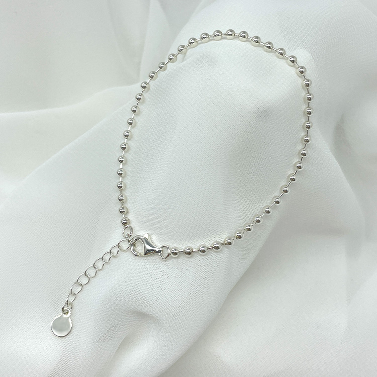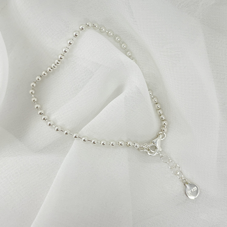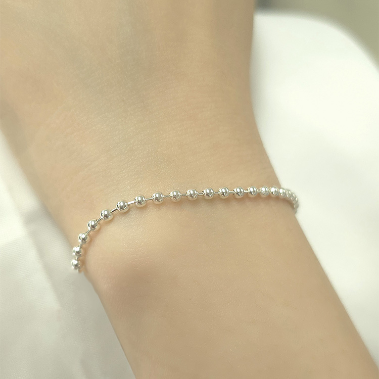 작은 볼들이 정교하게 연결되어 유려한 곡선을 이루는 팔찌입니다.