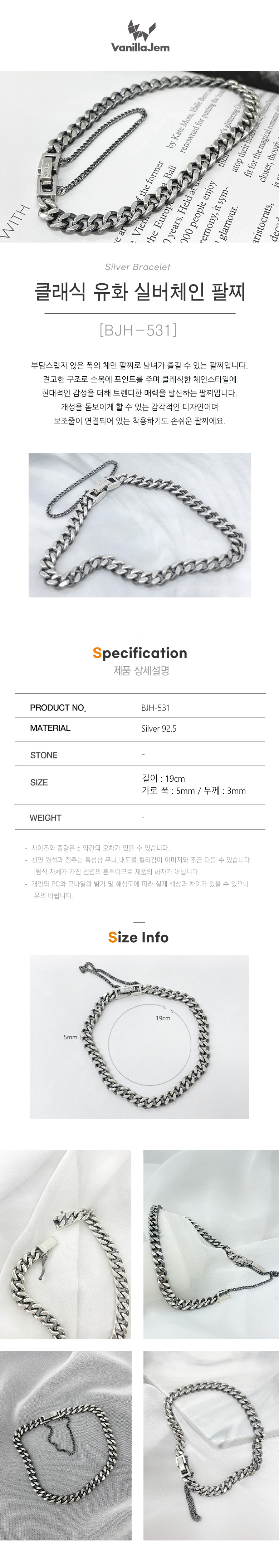 견고한 구조로 손목에 포인트를 주며 클래식한 체인스타일에 현대적인 감성을 더해 트렌디한 매력을 발산하는 팔찌입니다.