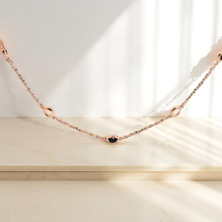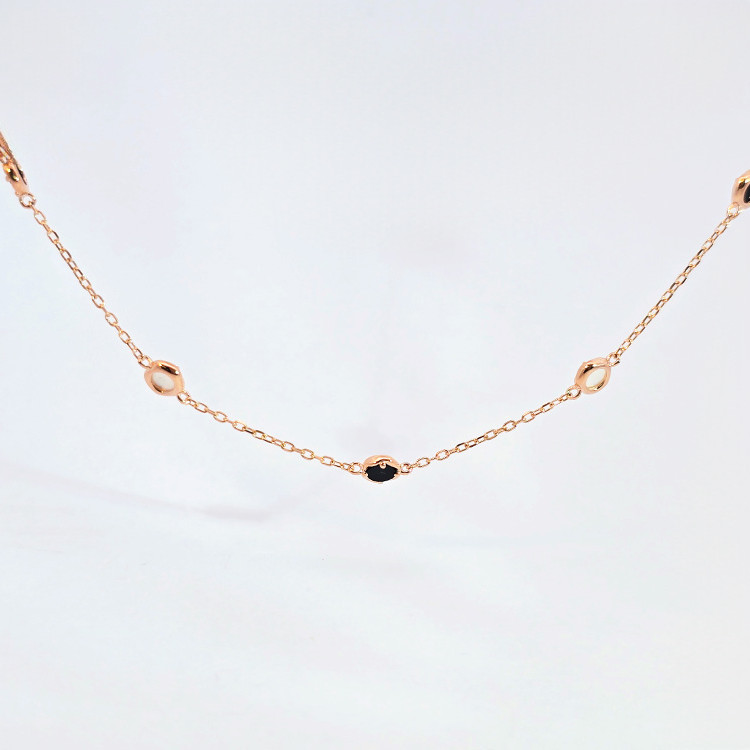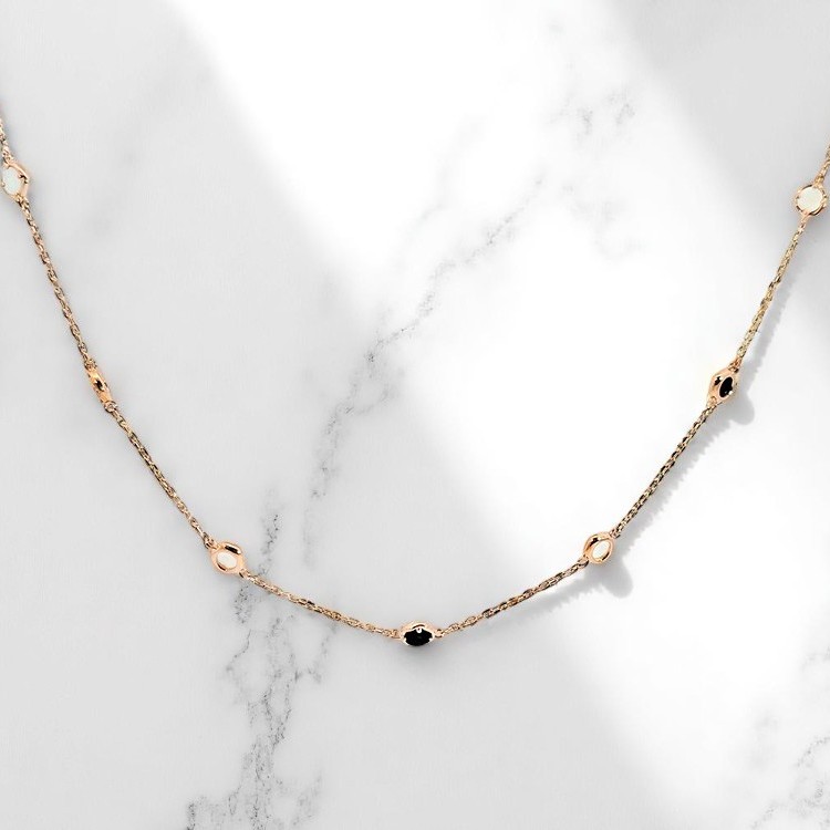 시크한 오닉스의 깊은 블랙과 화사한 자개의 영롱한 광채가 돋보이는 목걸이입니다.
