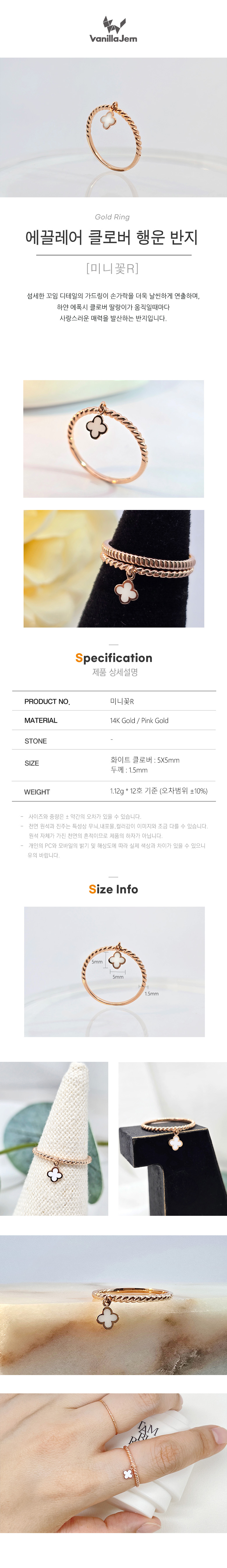 꼬임디자인과 하얀색 에폭시 클로버가 딸랑이는 행운반지입니다.