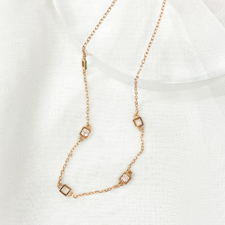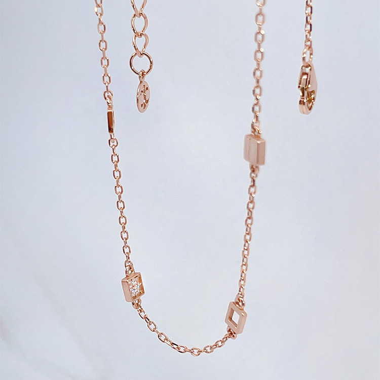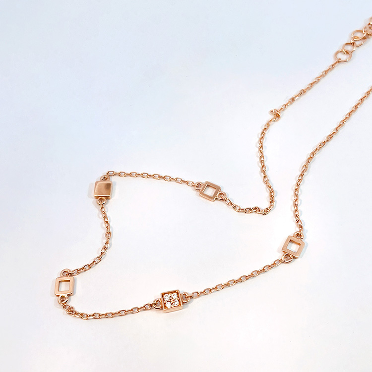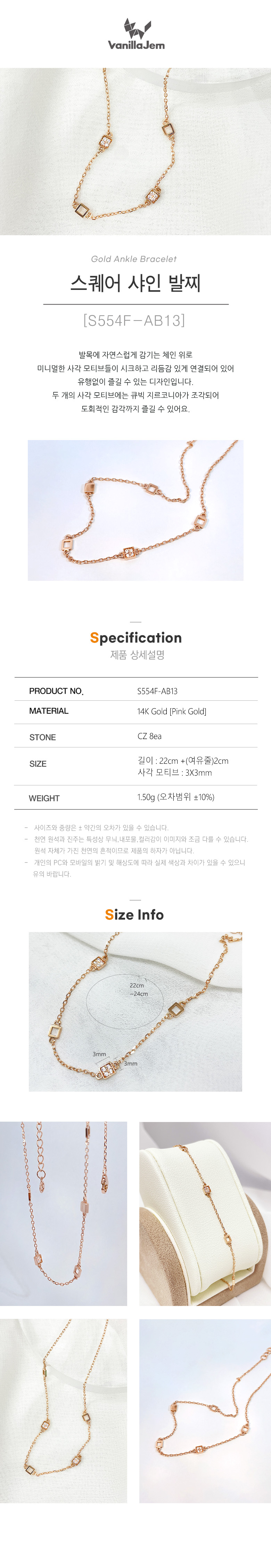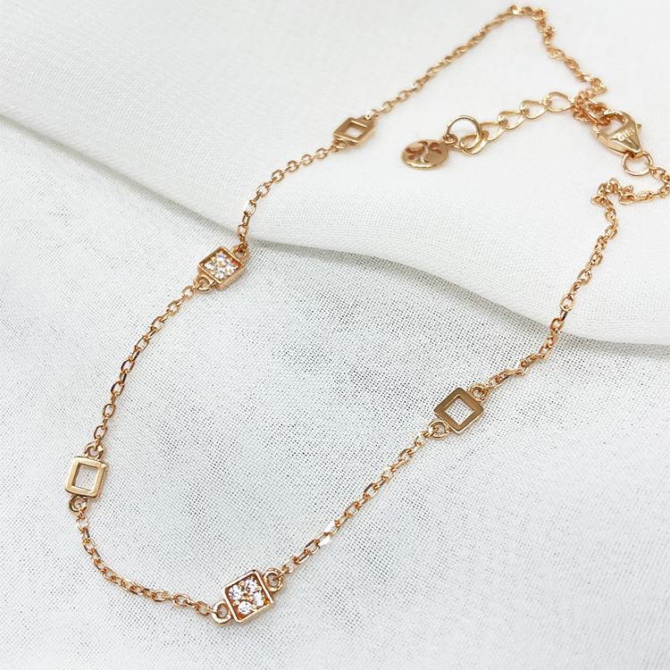 발목에 자연스럽게 감기는 체인 위로 미니멀한 사각 모티브들이 시크하고 리듬감 있게 연결되어 있어 유행없이 즐길 수 있는 디자인입니다.