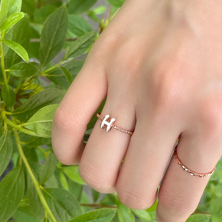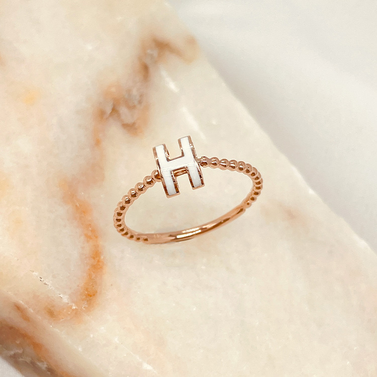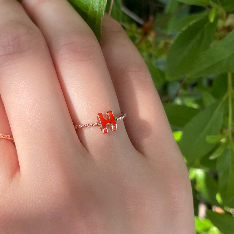 선명한 레드/화이트 양면 에폭시로 채워진 H 이니셜이 돋보이는 반지입니다.