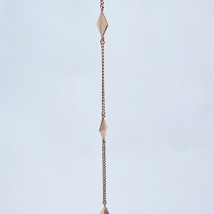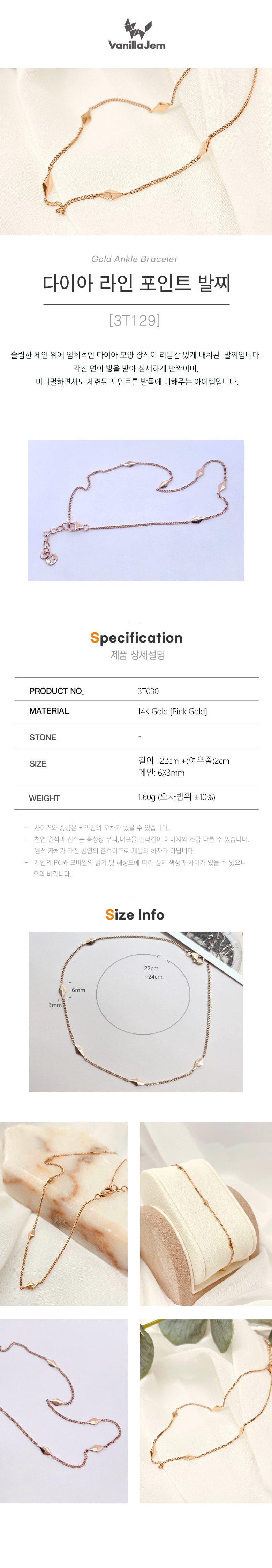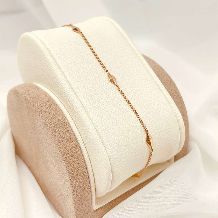 슬림한 체인 위에 입체적인 다이아 모양 장식이 리듬감 있게 배치된  발찌입니다.