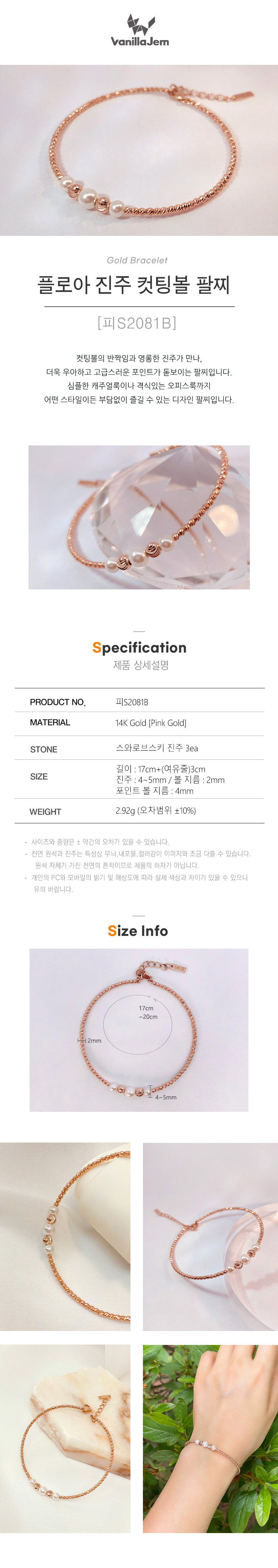 플로아 진주 컷팅볼 팔찌[피S2081B]