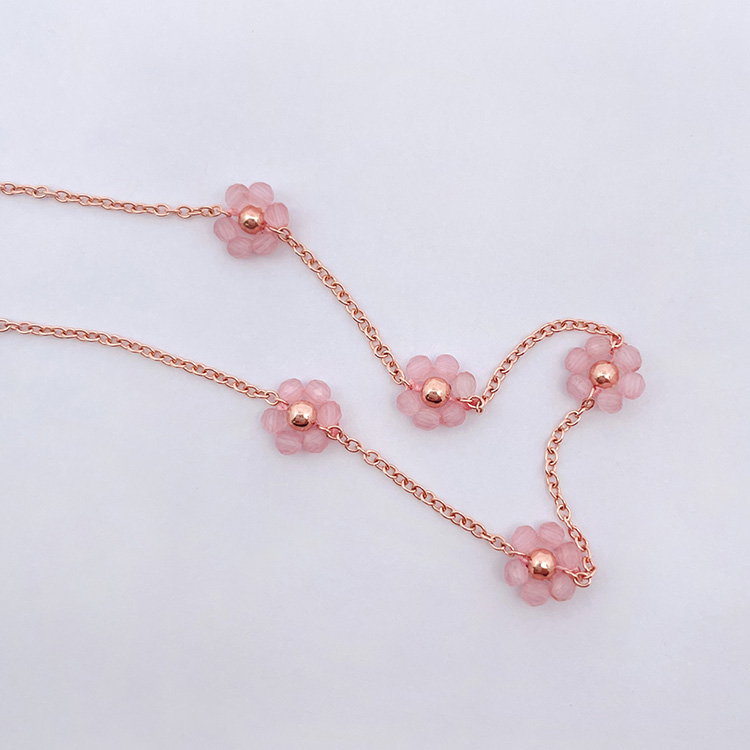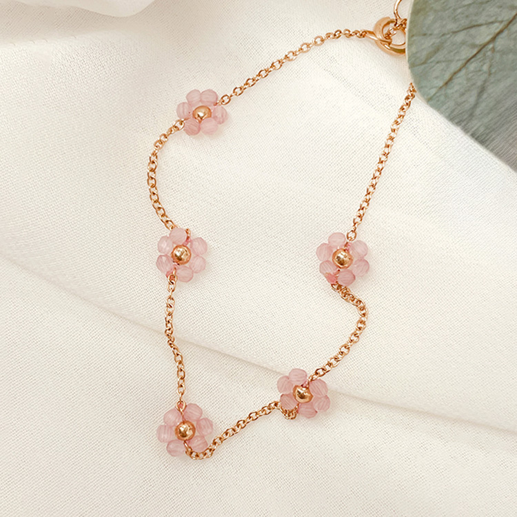 은은한 핑크빛의 캐츠아이 스톤으로 완성된 꽃들로 포인트를 주는 팔찌입니다.
