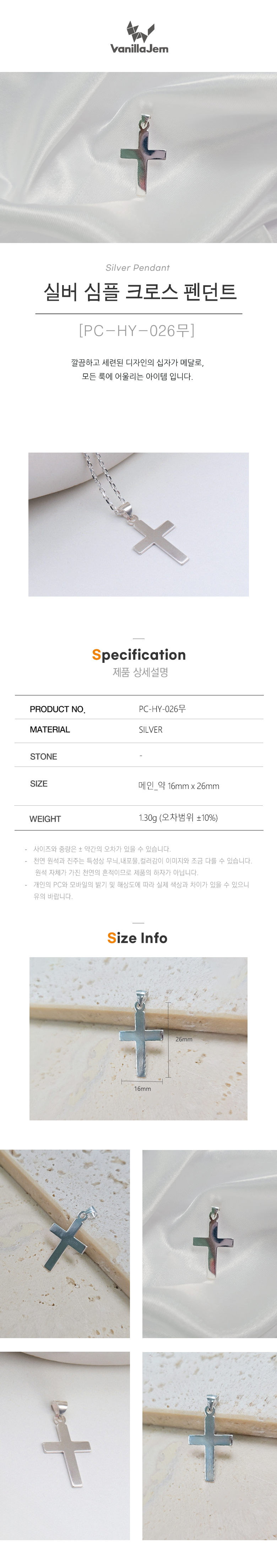 깔끔하고 세련된 디자인의 십자가 메달로, 모든 룩에 어울리는 아이템 입니다.