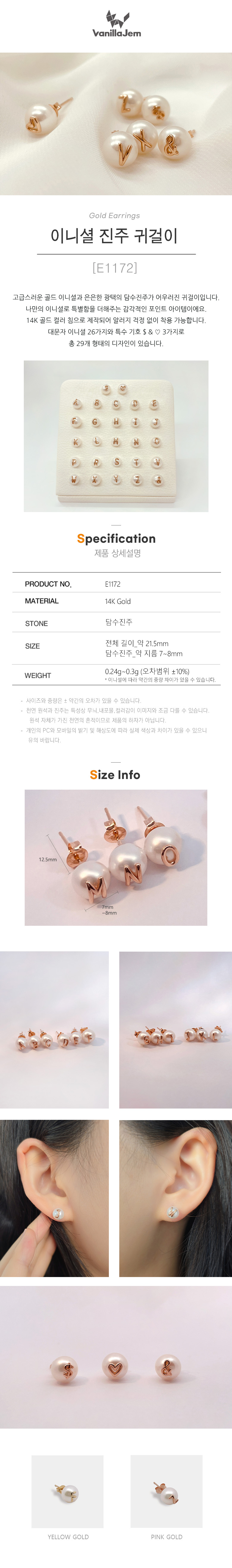 이니셜 진주 귀걸이[E1172]