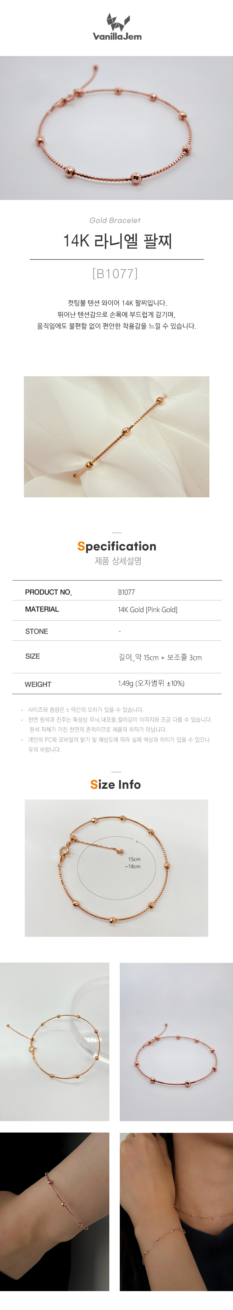 컷팅볼 텐션 와이어 14K 팔찌입니다.