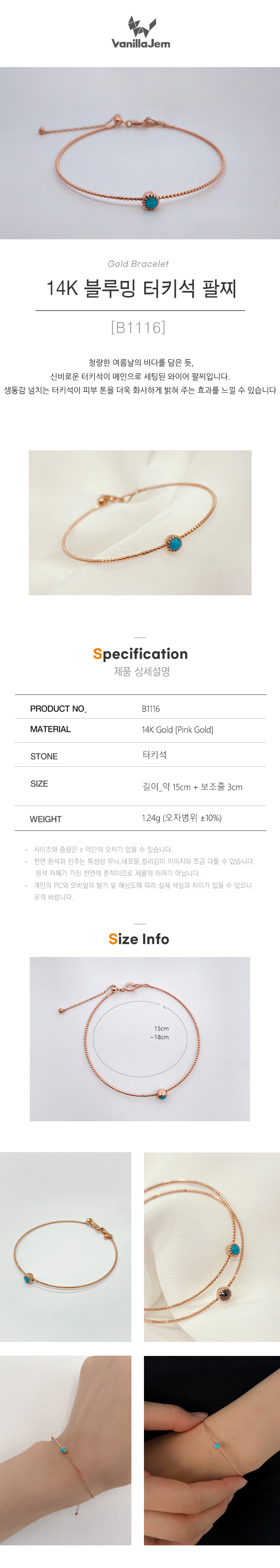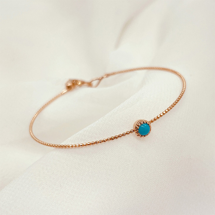 청량한 여름날의 바다를 담은 듯, 신비로운 터키석이 메인으로 세팅된 와이어 팔찌입니다.