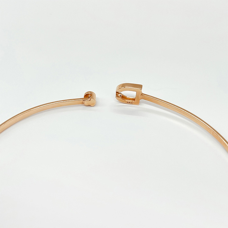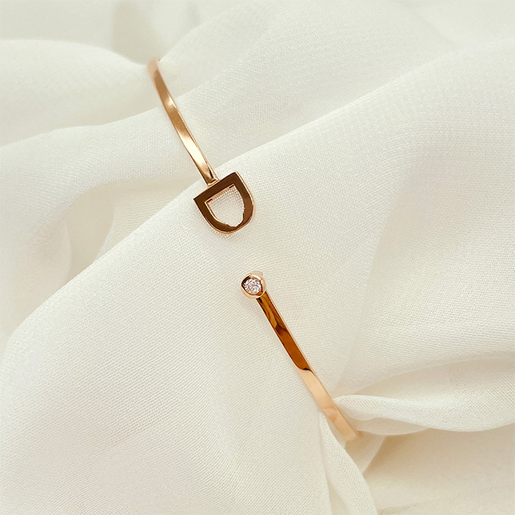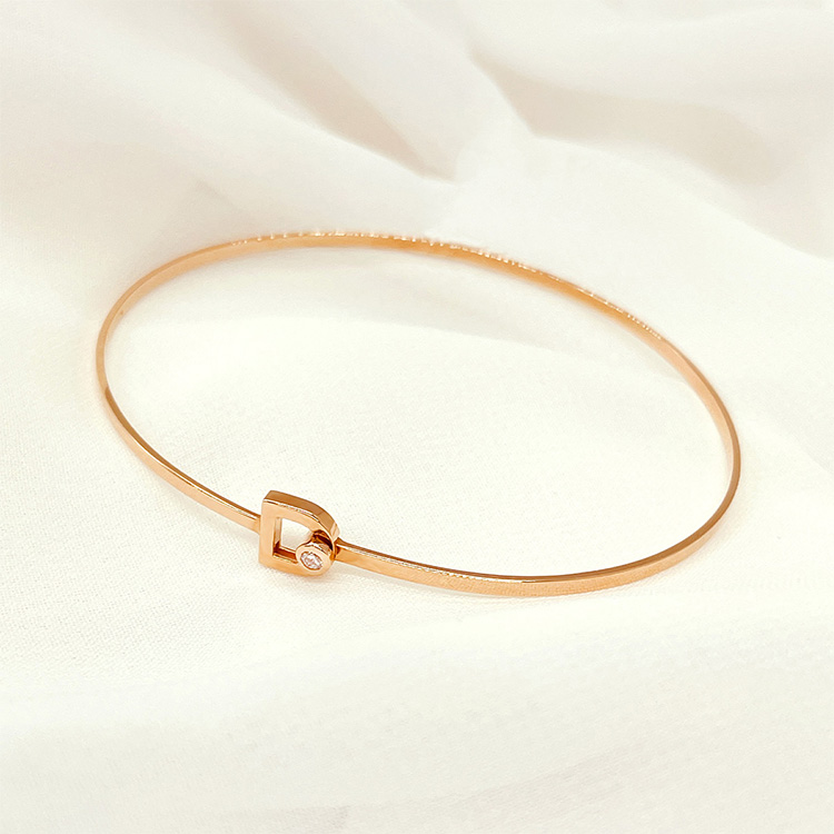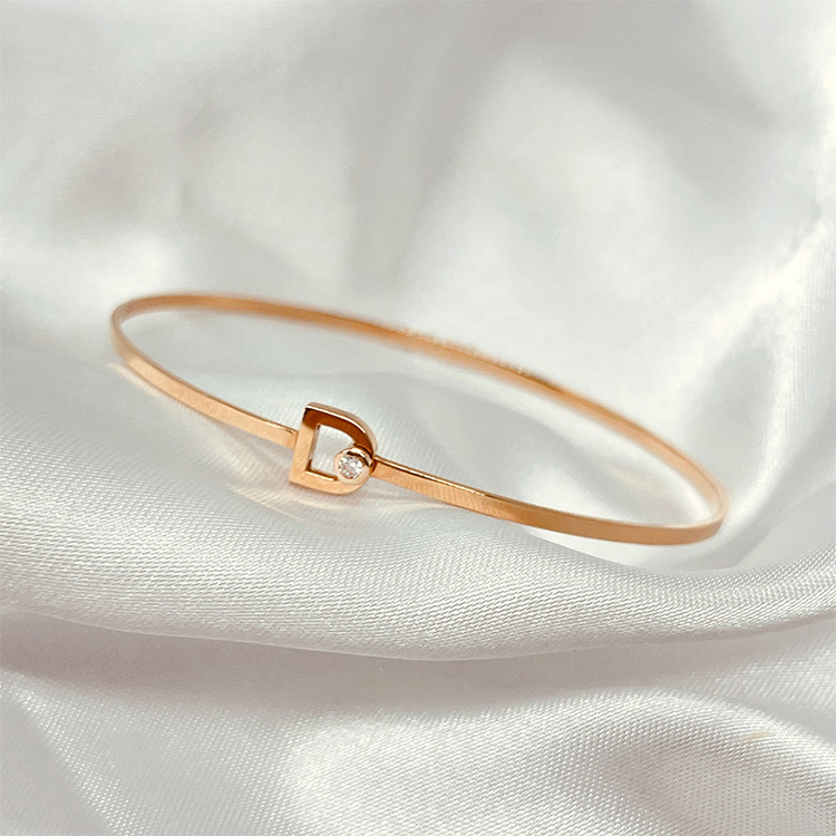 견고하고 세련된 뱅글 디자인에 메인D자와 랩그로운 다이아몬드의 세팅이 돋보이는 팔찌입니다.