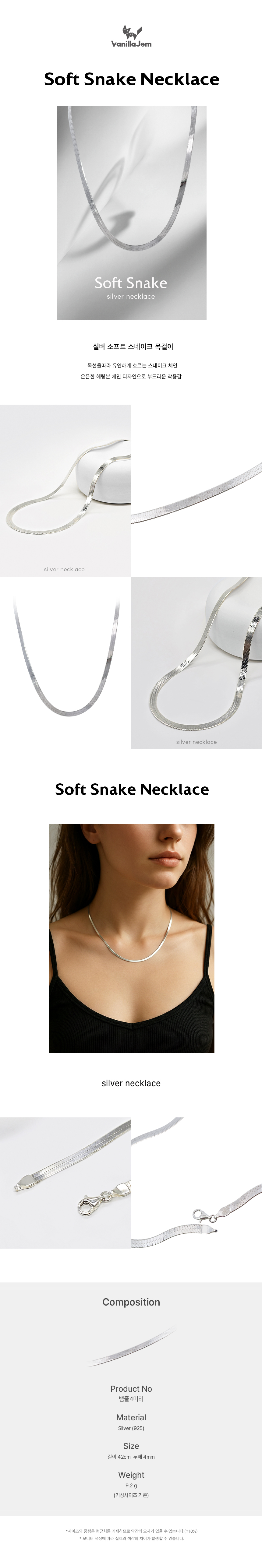 실버 소프트 스네이크 목걸이