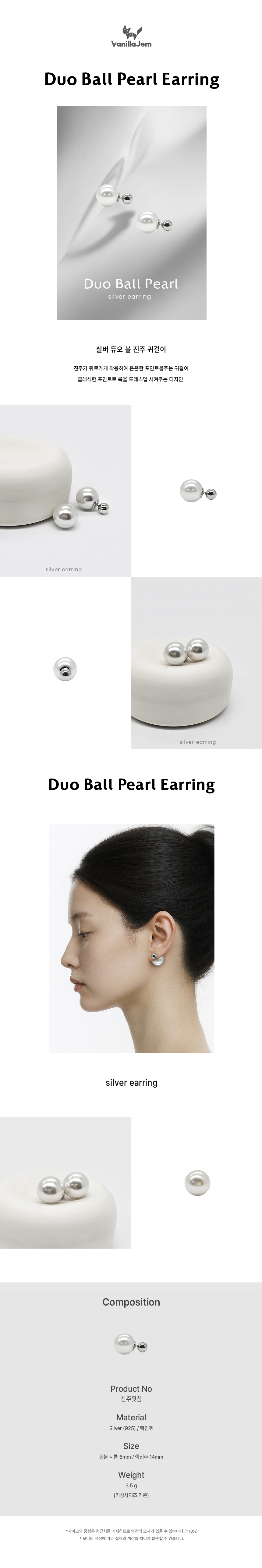 실버 듀오 볼 진주 귀걸이