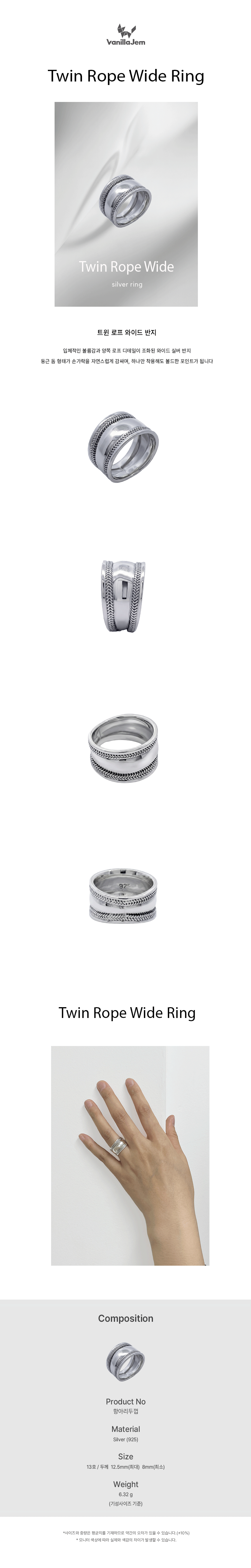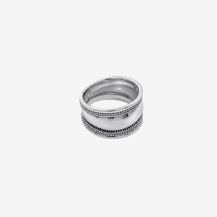 실버 트윈 로프 와이드 반지