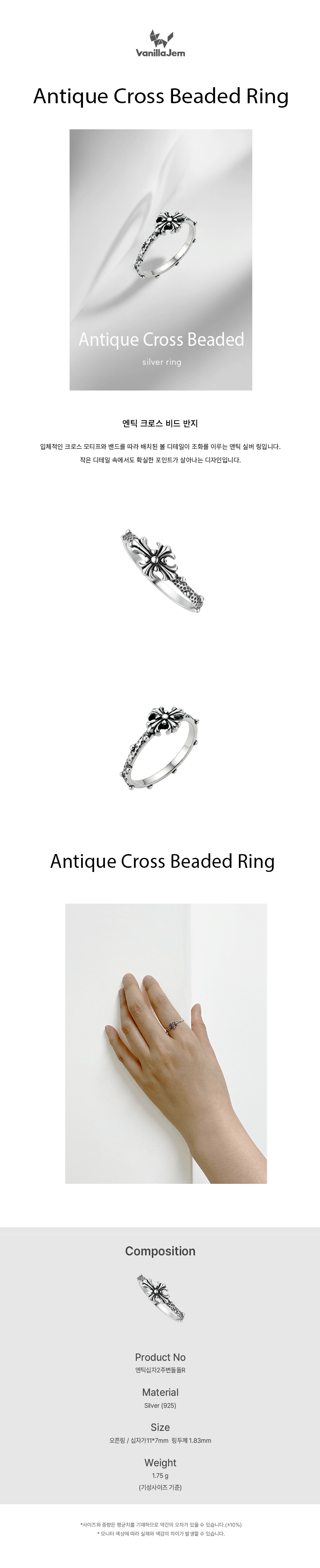 실버 앤틱 크로스 비드 반지