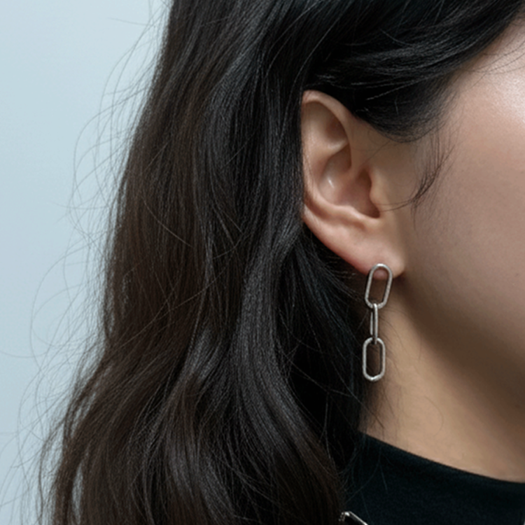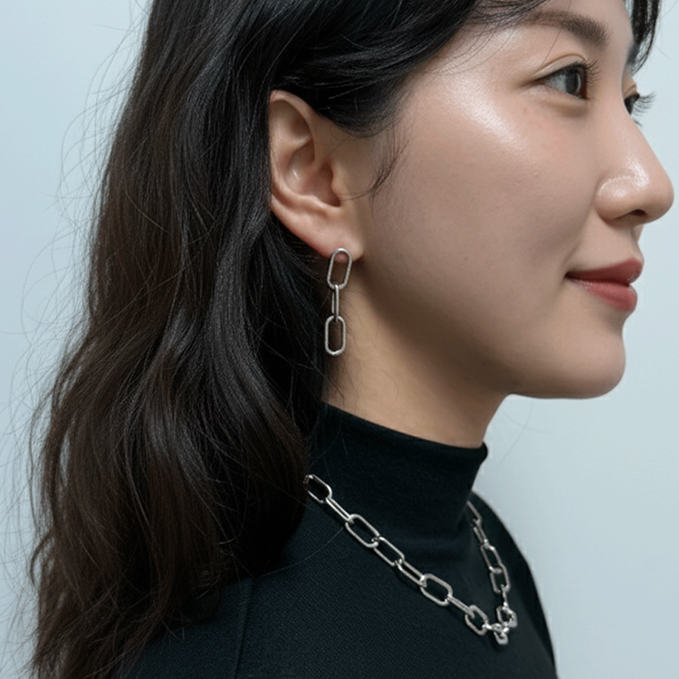 실버 민자 체인 드롭 귀걸이