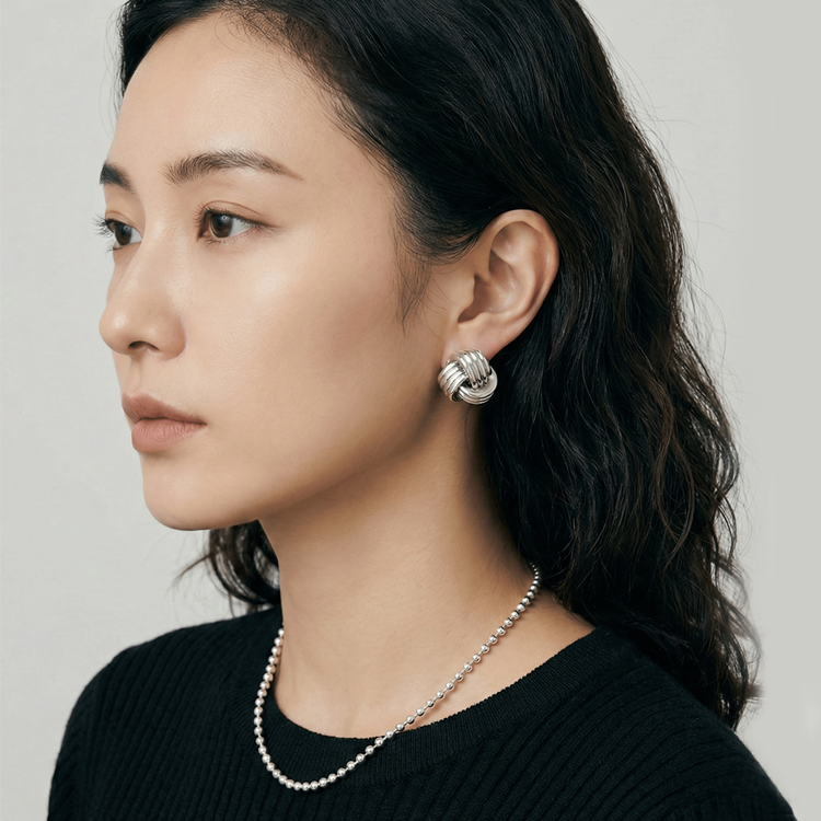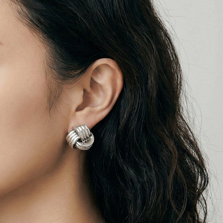 실버 네줄 매듭 귀걸이