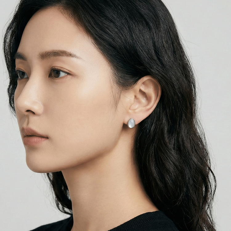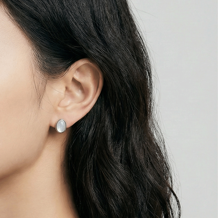 실버 앤틱 돔 자개 귀걸이
