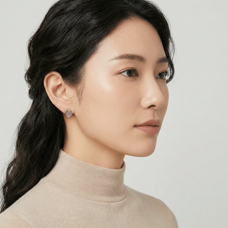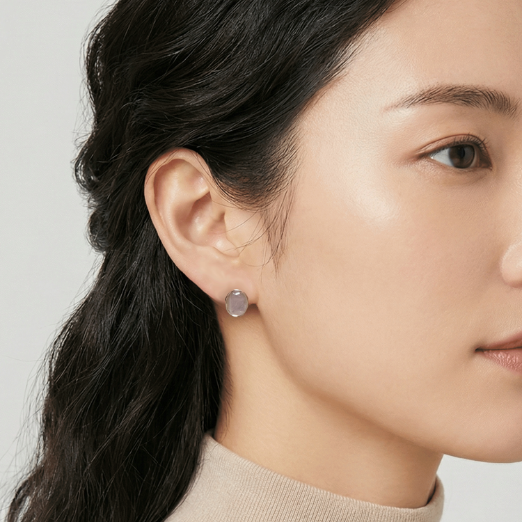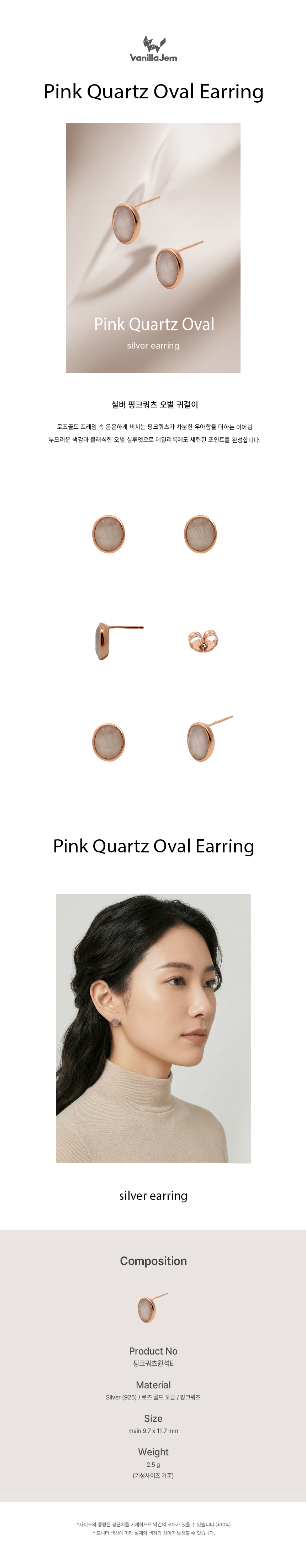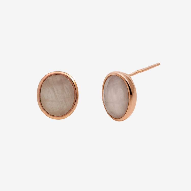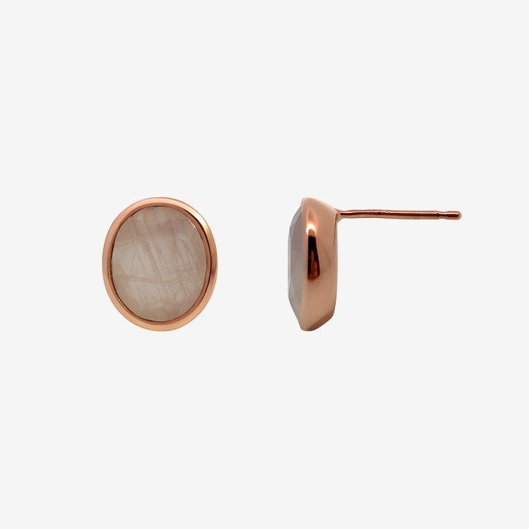 실버 핑크쿼츠 오벌 귀걸이