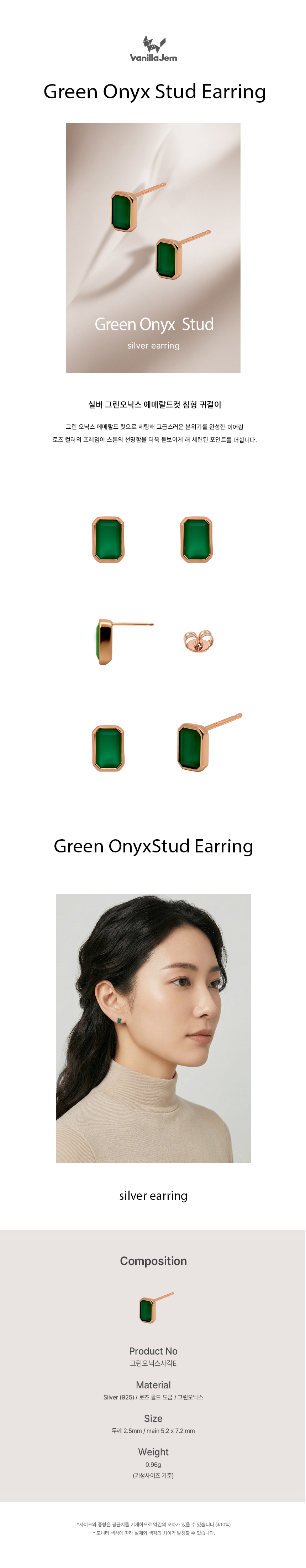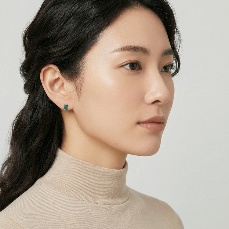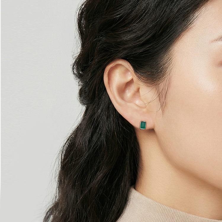 실버 그린오닉스 에메랄드컷 침형 귀걸이