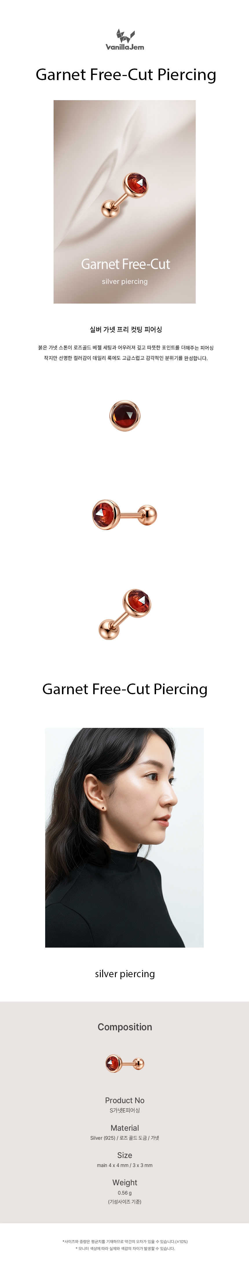 실버 가넷 프리 컷팅 피어싱