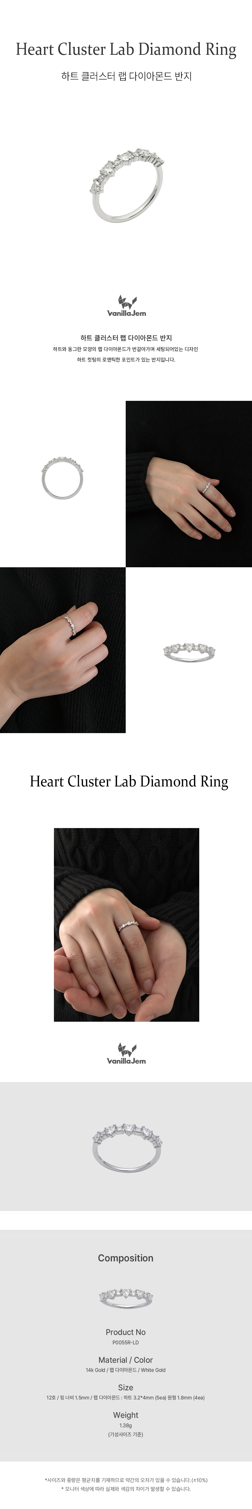 하트 클러스터 랩 다이아몬드 반지