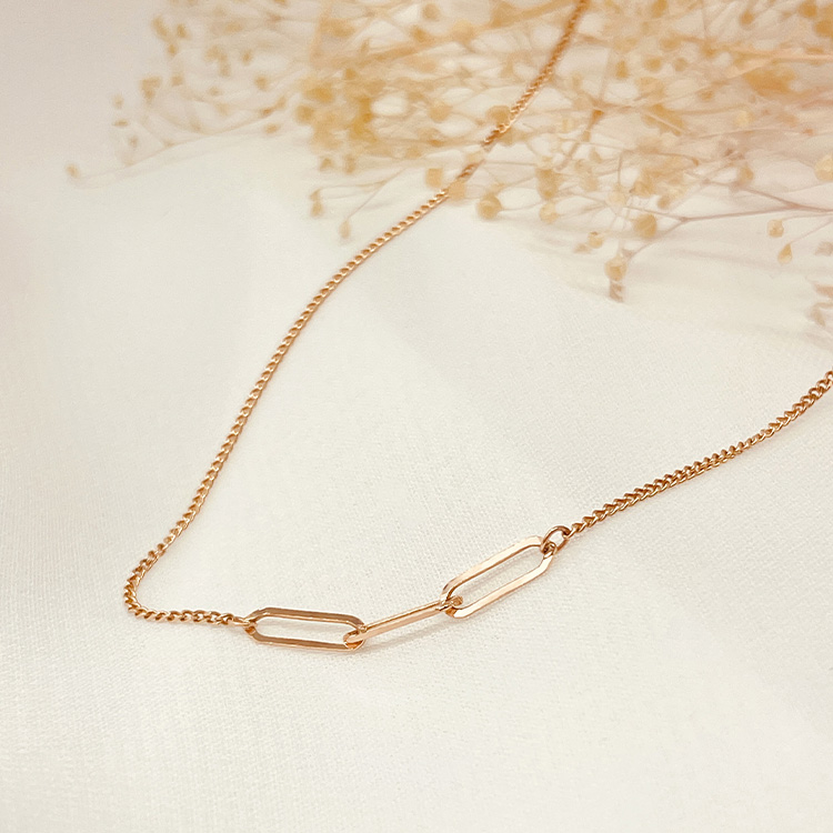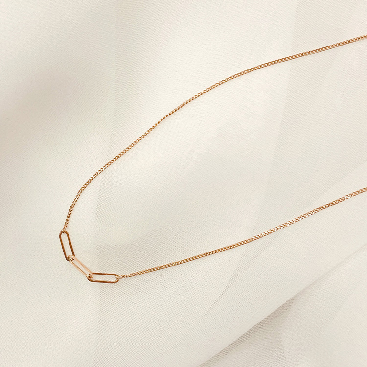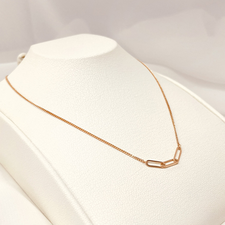 세 개의 체인이 연결된 펜던트가 포인트인, 미니멀하면서도 감각적인 디자인의 목걸이입니다.